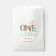 Preppy first birthday party supplies for your “wild one” features glittery pink and green hibiscus florals, patterned ONE, and a leopard stalking through the letters.