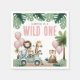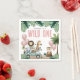 Add a sweet, girly touch to your party tables with this Wild One birthday napkin designed for a little girl’s celebration. The front features soft pink balloons for a cheerful, playful look, paired with the phrase Name Is A Wild One! The text is styled in a bold rustic pink font mixed with a clean gray sans serif for a modern, charming feel. Space is included to personalize the child’s name.