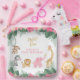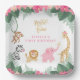Super sweet safari birthday plates for your "wild one's" first birthday celebration! Cute monkey, striped zebra, jumping lion, sprinkling elephant and curious giraffe join the party :) Light and dark pink jungle flowers are paired against tropical leaves and ferns. Perfect for the baby girl's 1st birthday!