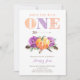 Purple and orange bohemian 1st birthday party invitations for your little girl.