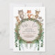 Celebrate your little one's 1st birthday with this wild one themed birthday invitation. The lovely design features a group of adorable forest animals and beautiful cascading greenery.
