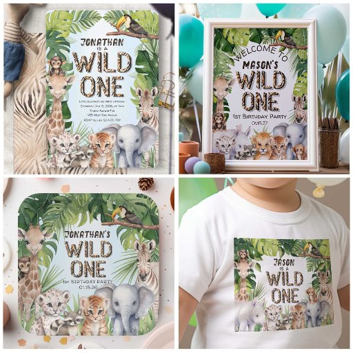 Wild one Jungle Safari Animals Boy 1st birthday Designed by Pixelia Designs