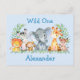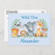Wild One Safari Animals Birthday Invitation Blue Postcard