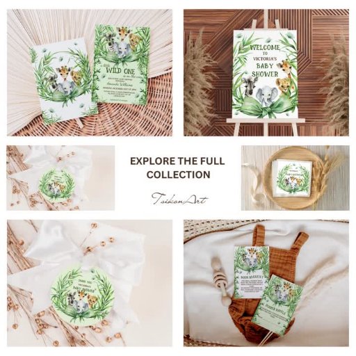 Jungle Safari Animals Greenery Botanical Baby Shower collection