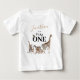 Wild one 1st birthday t-shirt featuring cute watercolor safari animals (giraffe, elephant, lion, zebra, leopard, monkey, bee eater bird), and the saying "(childs name) is a wild one".