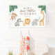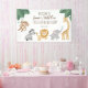 Celebrate the little one's first birthday with this adorable safari birthday welcome sign! Sweet baby animals paired with tropical leaves and gold text are perfect for first birthdays. Text reads "Welcome to names WILD ONE FIRST BIRTHDAY PARTY. Text can be changed to your own wording. Featuring cute little monkey swinging on the vine, stripey zebra, cute lion, sprinkling elephant and curious giraffe. Easy to set the tone and style for a super fun "wild one" jungle or safari theme party!