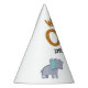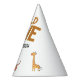 Celebrate your little boy's 1st birthday in style with these unique whimsical safari-themed first party paper hats. The design features a group of adorable jungle animals in a bold simple design and the name of the birthday boy.
