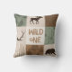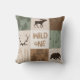 Wild one Throw Pillow - green and brown. Moose, bear, antlers, woodland and arrows.