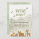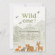 Celebrate your child’s first birthday with this charming “Wild One” woodland invitation! Featuring watercolor forest animals — fox, bear, racoon, bunny, and deer — along with soft mountain and pine tree backgrounds, this rustic design is perfect for a cosy outdoor-inspired party. Easily personalise with your child’s name, date, time, and RSVP details. A beautiful choice for boys or girls who love nature and animals!
