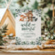 Wild and Onederful! Woodland Animal Birthday with bear, fox, deer, racoon and trees with woodgrain back.