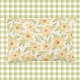 Romantic country cottage cabin style tossed floral pattern with tossed blushing orange Anemone flowers and soft sage green leaves set on a solid orange cream background. This design has a fixed background, but the size and position of the pattern can be changed.