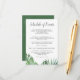 This wild palm wedding weekend schedule of events enclosure card is perfect for a beach or destination wedding. The design features an exotic array of green watercolor banana palm tree leaves, ferns, foliage, botanical plants and greenery for a tropical summer feel.