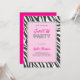 A modern, fun Sweet 16 party invitation featuring a zebra print background, a pink, rhinestones frame (this is a digital effect, not real rhinestones), hot pink for the title "Sweet 16" and the birthday girl's name and the word "PARTY" with a rhinestone effect. A hot pink invitation as wild as its theme.