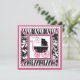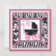 Boutique style zebra, damask, and dot print with hot pink accents and a baby carriage.