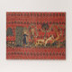 WILD PEOPLE IN DEER HUNT, Animals ,Red Floral Jigsaw Puzzle
