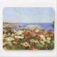 This design features original artwork by the American impressionist painter Childe Hassam (1859–1935). It depicts wild poppies growing in grass by a shore on the Isles of Shoals, which are a group of small islands off the east coast of the United States, straddling the border of the states of Maine and New Hampshire. The poppy flowers are white, pink and red. The sea in the distance is light blue and the sky is clear and cloudless. There are some rocky cliffs on the coast, leading down into the water. The original artwork was painted by Childe Hassam in 1890.