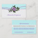 Wild purple rose light blue, white floral business card, featuring a beautiful wild rose in purple with dark green leaves, purple waved lines and halftone elements on white and light blue background. Elegant, unique design perfect for personal or professional use.