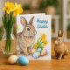 This Easter greeting card features a digital color pencil drawing of a wild rabbit, vibrant Easter eggs, and yellow daffodil flowers, accompanied by a "Happy Easter" message. Upon opening, the card reveals an illustration of a mother rabbit and baby bunny on the left, while the right side displays the greeting, "May this Easter bring gentle moments, warm memories, and blessings that last all year." Purchase this card as is, or personalize it to create a truly thoughtful holiday card for your family and friends.