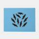 This Pacific Northwest theme doormat features a circular pattern of salmon icons. Done in black with white trim, this pattern of fish can represent wild salmon, recreational and commercial fishing, Alaska, and other topics. The background of this doormat is an ocean blue, but can be changed to any colour.