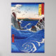 Wild sea breaking on the rocks. Famous Views of the 60 Provinces - Rough Sea at Naruto in Awa Province. Hiroshige (1797-1858), Japanese painter and printmaker, known especially for his landscape prints. The last great figure of the Ukiyo-e, or popular, school of printmaking, he transmuted everyday landscapes into intimate, lyrical scenes that made him even more successful than his contemporary, Hokusai.