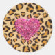 Wild sparkling pink Hearts and Leopard print Classic Round Sticker