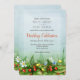 This wild strawberries wedding invitation card features a bounty of tiny, ripe, red strawberries in a patch of wild strawberry plants at the lower border of the card, with tiny yellow buttercups, blue forget-me-nots and a single daisy peeking out from between the strawberry leaves - your wedding details are on a semi-transparent white square frame graphic that partially reveals the meadow green to sky blue watercolor gradient background - by katz_d_zynes | Part of katzdzynes’ Strawberries and Wildflowers collection >> https://www.zazzle.com/collections/119185498872390969