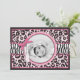 Cheetah print with hot pink 3D look bow and tag with zebra print contrast announcement card.