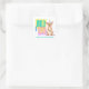 Wild & Three Kangaroo 3rd Birthday Favour Stickers featuring a watercolor lion in a party hat. Customise with your own text.
