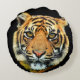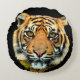 Wild Tiger Animal Face on Black Round Cushion