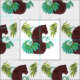 Brown tiger sitting among green leaves custom pattern on a fabric.