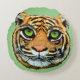 Wild Tiger Face on Green Round Pillow