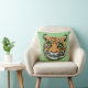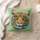 Wild Tiger Face on Green Throw Pillow