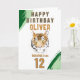 Wild Tiger Head Watercolor Birthday Card. Featuring a watercolor tiger head, bold green brushstrokes, and customizable text, this design is perfect for any young adventurer. Personalize with any name and age to create a truly unique and memorable greeting. Ideal for jungle themed parties or tiger lovers.