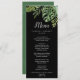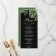 This wild tropical palm black wedding dinner menu card is perfect for a beach or destination wedding. The design features an exotic array of green watercolor banana palm tree leaves, ferns, foliage, botanical plants and greenery on a black background for a tropical summer feel. This menu can be used for a wedding reception, rehearsal dinner, or any event.