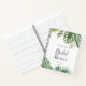 This wild tropical palm bridal shower gift list notebook is perfect for a beach theme wedding shower. The design features an exotic array of green watercolor banana palm tree leaves, ferns, foliage, botanical plants and greenery for a tropical summer feel. Personalise with the name of the bride-to-be.
