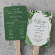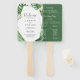 This wild tropical palm geometric wedding program fan is perfect for a beach or destination wedding. The design features an exotic array of green watercolor banana palm tree leaves, ferns, foliage, botanical plants and greenery for a tropical summer feel. Include the name of the bride and groom, the wedding date and location, thank you message, order of service, and bridal party. Order your programs assembled or non-assembled.
