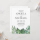 This wild tropical palm hexagon casual wedding invitation is perfect for a beach or destination wedding. The design features an exotic array of green watercolor banana palm tree leaves, ferns, foliage, botanical plants and greenery for a tropical summer feel.