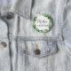 This wild tropical palm mother of the groom button is perfect for a beach theme wedding shower. The design features an exotic array of green watercolor banana palm tree leaves, ferns, foliage, botanical plants and greenery for a tropical summer feel.