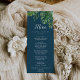 This wild tropical palm navy blue wedding dinner menu card is perfect for a beach or destination wedding. The design features an exotic array of green watercolor banana palm tree leaves, ferns, foliage, botanical plants and greenery on a navy blue background for a tropical summer feel. This menu can be used for a wedding reception, rehearsal dinner, or any event.