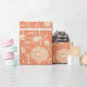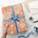 Wrapping paper featuring a design by William Morris, the renowned English designer from the Arts and Crafts movement, showcasing Wild Tulips (1884) which are set against a peach backdrop. This pattern draws inspiration from Turkish brocades.