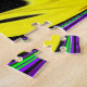 An original abstract in vivid vibrant neon colors of purple, yellow and green with a splash of orange and blue tossed in. This is a cool puzzle challenge that makes a worthy wall hanging when finished. #bold #wild #colorful