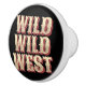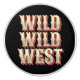 Retro style grunge "Wild Wild West" text design with striped letters in yellow, red and beige colours