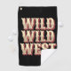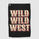 Retro style grunge "Wild Wild West" text design with striped letters in yellow, red and beige colours