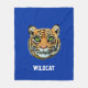 Wildcat & Calligraphy on Blue Fleece Blanket