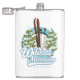 The flask itself is fine. It’s a cheap flask, obviously bought in bulk, however am prepared to overlook that. Given that it is a personalized item, I would have liked to have seen gift boxing instead of the generic packaging. Terrible printing, and/or quality. It’s a cheap, tacky vinyl. It is not cut straight and is also applied in a way that it is overhanging the bottom, causing the glue to catch on items and it will eventually roll and tear, damaging the wrap.