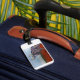 I was happy with the acrylic tag but it came with a thin leather strap to attach the tag to luggage (like a cat collar). I replaced the strap with a metal ring off of a key ring as the leather strap would come undone or break easily as luggage is sometimes handled without much care by airlines. Printing is great. Colours and positioning of the design I put on the tag were perfect. Very pleased.