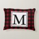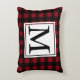 Bold flat black buffalo plaid pattern with custom accent background colour and black monogram letter over a white decorative square. This design is very masculine and would go great with a lumberjack or lodge decor theme.  You could also use it to add a splash of pattern and class to a man cave!
