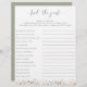 Wildflower Baby Shower, Find the Guest game sheet with coordinating sage green colour backing.