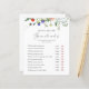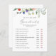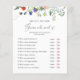 Bridal shower game card featuring a watercolor cascade of wildflowers and greenery with a buzzing bee. A fun way to interact with shower guests.