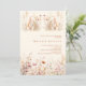 An elegant Baby Shower invitation. A cream, beige coloured background decorated with watercolored wildflowers in beige, pink.